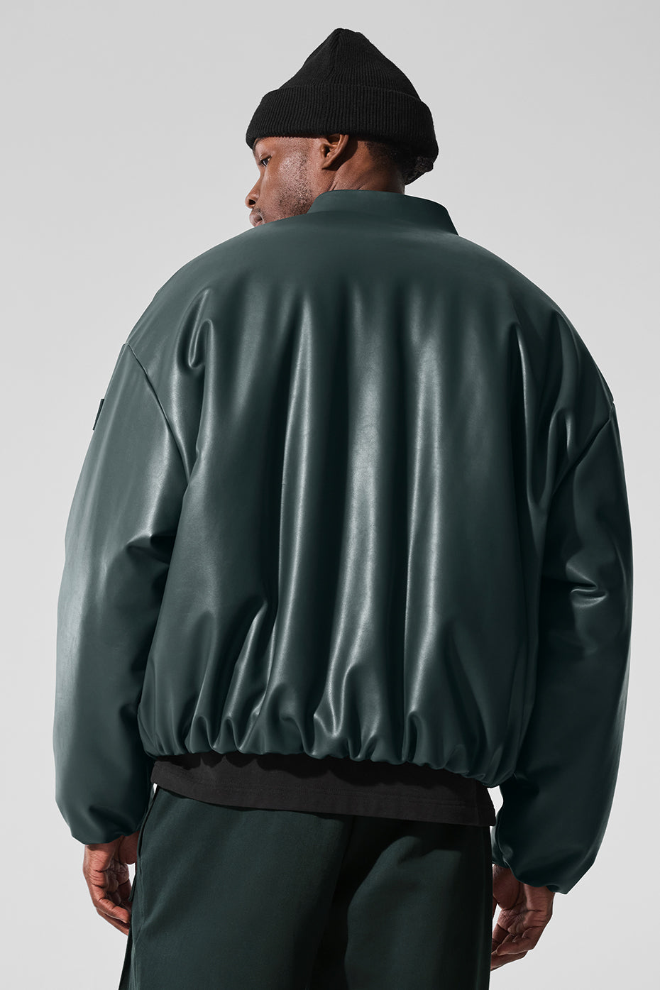 Faux Leather Premier Bomber – Charcoal Green