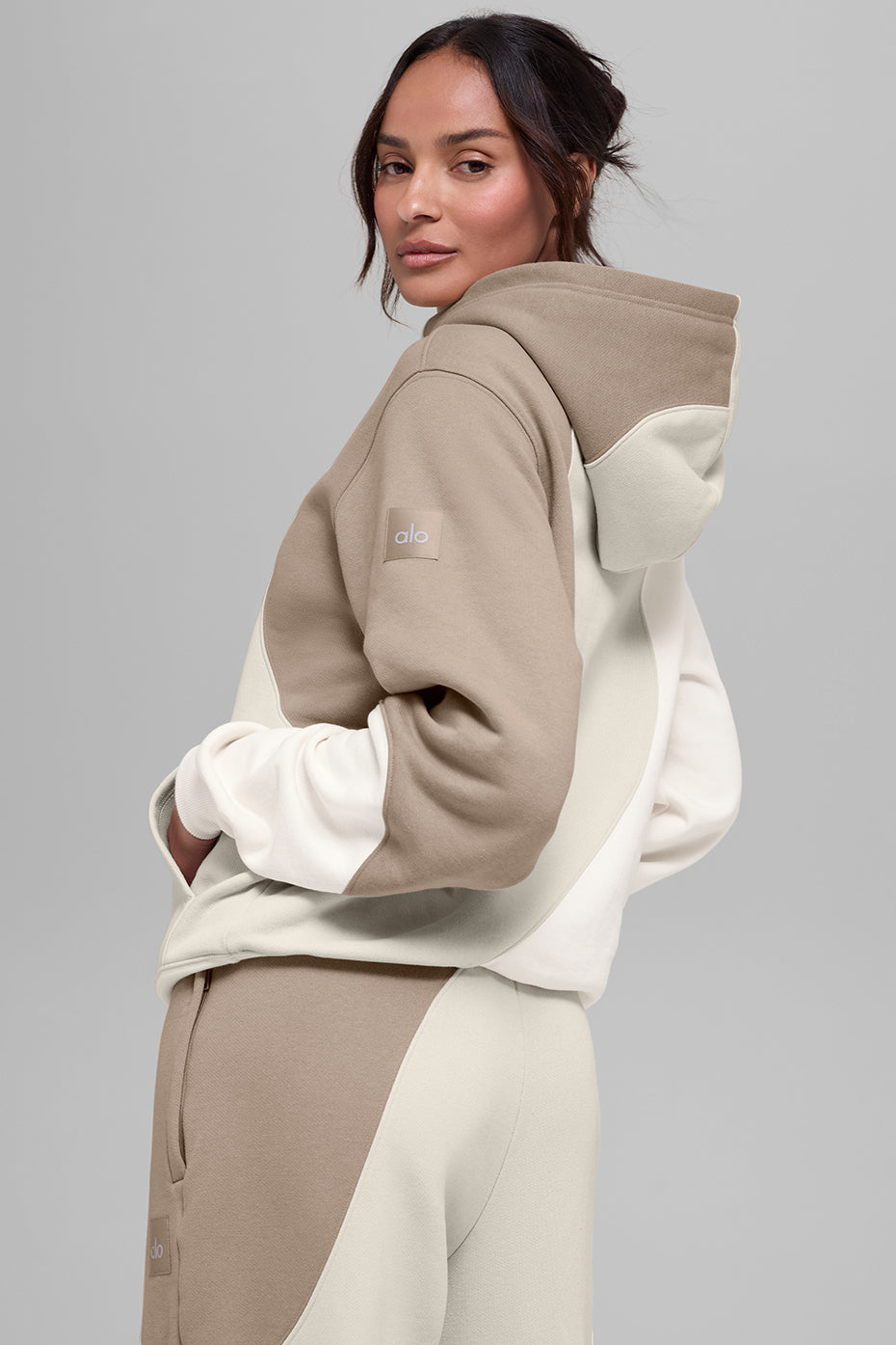 Smile and wave. Crafted from the same soft on the outside. fleecy on the inside French terry fabric as our best-selling Accolade essentials. this oversized hoodie turns heads and keeps you cozy from studio to street. Done in a neutral palette that looks fresh in every season. and finished with a seamed wave pattern that looks even better with the matching sweatpants.